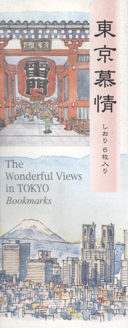 Elegancki japoński zestaw zakładek premium z piękną, artystyczną ilustracją. Zestaw zawiera 6 różnych zakładek do książki, inspirowanych klasycznym japońskim drzeworytem. Przedstawiony wzór ukazuje dwie piękne sceny Tokio. Górna część przedstawia tętniący życiem Kaminarimon słynną Czerwoną Bramę Świątyni Senso-ji z dużym czerwonym lampionem i przechadzającymi się ludźmi, dolna część pokazuje panoramę współczesnego Tokio z wieżowcami na pierwszym planie i majestatyczną górą Fuji w tle. Smukły format, subtelny jasny pasek z eleganckimi japońskimi napisami. Zestaw w ochronnej kopercie.