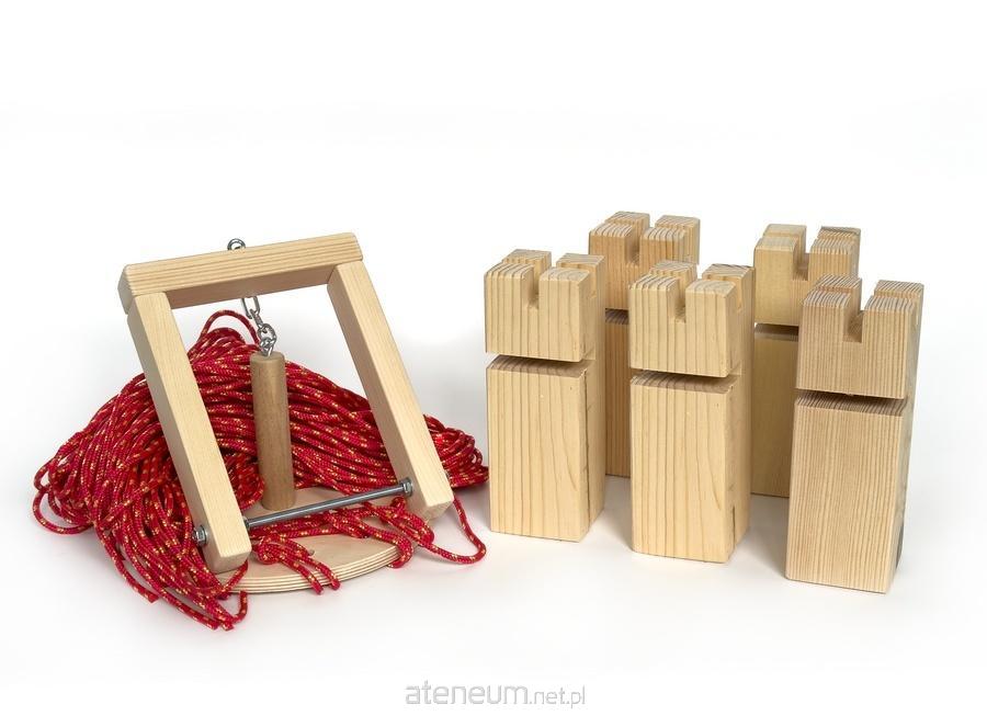 1. Rozłóż klocki losowo na podłodze. Każdy gracz trzyma jeden lub dwa sznurki dźwigu. Sznurkami należy wspólnie unieść klocki tak, by powstała z nich wieża.