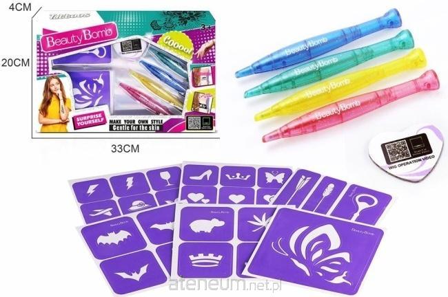 Każda młoda miłośniczka mody marzy o tym, by móc samodzielnie kreować swój wizerunek i dodawać blasku codziennym stylizacjom. Zestaw Beauty Bomb to profesjonalne studio tatuażu w zasięgu ręki, które zamieni dziecięcy pokój w centrum artystycznej twórczości. Sercem zestawu są cztery transparentne pisaki wypełnione intensywnymi barwami z lśniącymi drobinkami, które miękko prowadzą się po skórze, zostawiając na niej trwały, a jednocześnie łatwo zmywalny ślad.