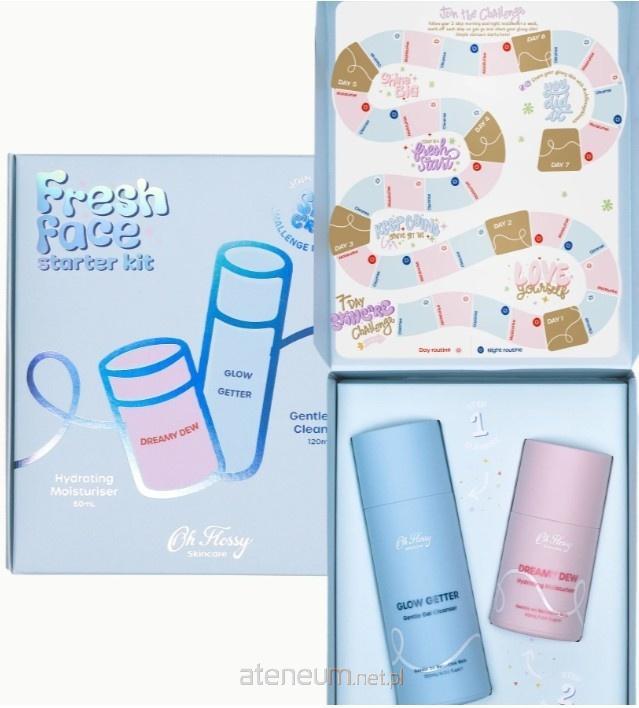 Oh Flossy Zestaw Pierwszej Pielęgnacji Twarzy to gotowe rozwiązanie: dwa starannie dobrane kosmetyki, które razem tworzą kompletny, dwuetapowy rytuał - oczyszczanie i nawilżanie. Nic więcej nie potrzeba.