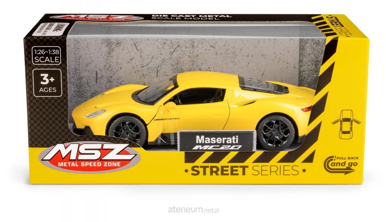 Model metalowy DIE-CAST wykonany z wysokiej jakości materiałów, z dbałością o każdy detal. Posiada napęd typu pull-back oraz otwierane drzwi, które umożliwiają zajrzenie do starannie odwzorowanego wnętrza pojazdu. Skala pojazdu w zależności od modelu: 1:26 - 1:38.\n\nMetalowa konstrukcja została uzupełniona elementami plastikowymi, co zapewnia trwałość oraz realistyczny wygląd modelu. To miniaturowe odwzorowanie prawdziwego auta, stworzone na oficjalnej licencji producenta.\n\nModel doskonale sprawdzi się zarówno jako element kolekcjonerski, jak i podczas kreatywnej zabawy dla dzieci.\n\nProdukt spełnia europejskie normy bezpieczeństwa zabawek.\n\nWiek: 3+