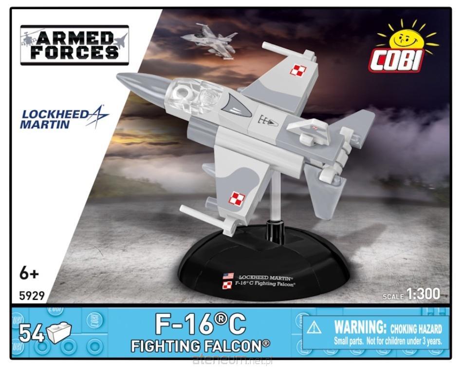 54 klocki - pozwalają zbudować wierną miniaturową wersję F-16C Fighting Falcon, zapewniając przyjemną i dynamiczną zabawę konstrukcyjną.