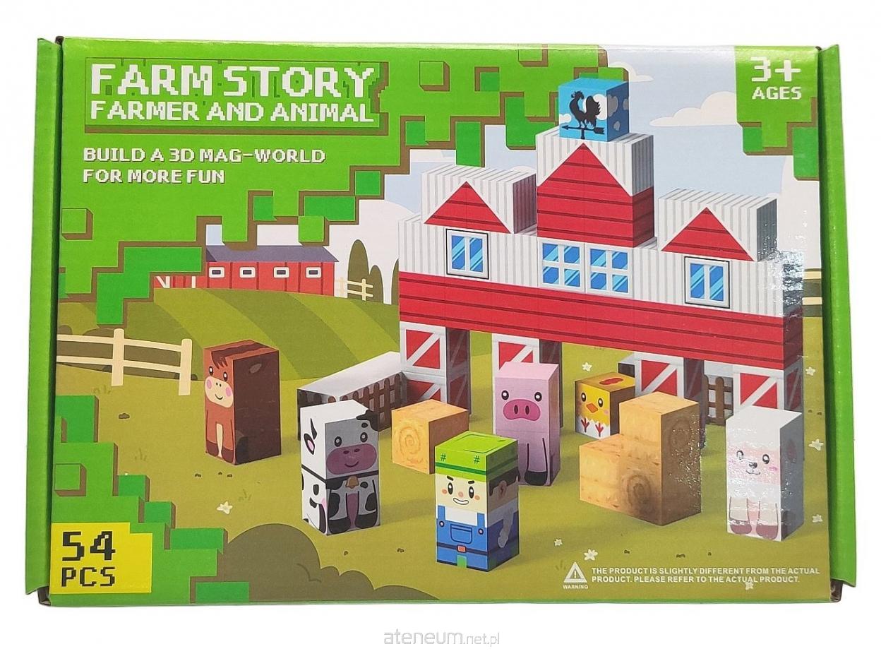 zestaw 54 klocków magnetycznych z obrazkami, farma; 24x16,5x3,5cm, Box