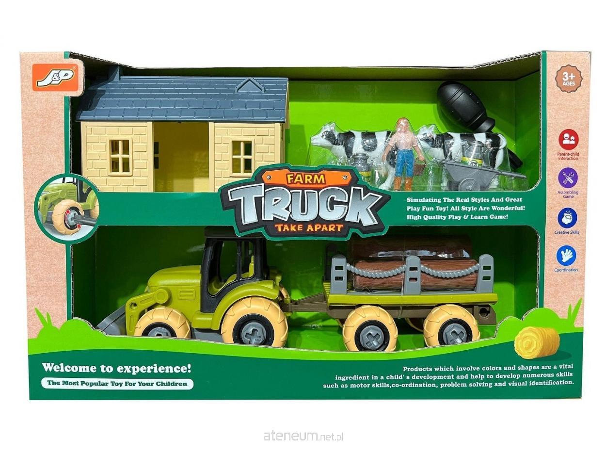 traktor do skręcania, z przyczepą, farma, figurki, budynek, ze śrubokrętem; 22,5x19x9cm, W/B
