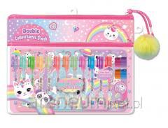 Zestaw zapakowany w przezroczystą saszetkę z dwoma przegródkami zamykanymi na zamek. Dodatkowo sznureczek i kolorowy pompon. W saszetce przesypują się holograficzne mini-ozdoby dla dodatkowego efektu. Wiek: 5+