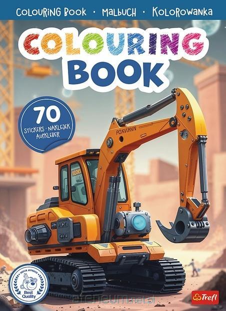 16-stronicowa kolorowanka z maszynami budowlanymi. W środku aż 70 naklejek.