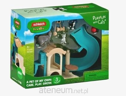 PLAC ZABAW DLA KOTÓW to zestaw, który zamienia podwórko w koci tor przeszkód pełen skoków i wspinaczek! Dwa rozbrykane kociaki pędzą w dół zjeżdżalni, wskakują na drapak i jednym susem znikają w małym domku. Za chwilę znów są na zewnątrz - huśtawka czeka, rampa prowadzi w górę, a schodki można przestawiać, więc każda runda wygląda inaczej. Dorosły kot w międzyczasie ostrzy pazurki na drapaku i czujnie obserwuje wygłupy swoich maluchów. Gdy przychodzi czas na przerwę, cała kocia ekipa wtula się w siebie w przytulnym domku. A po chwili - znowu ruszają do akcji! Zestaw Schleich zachęca dzieci do tworzenia ciepłych, codziennych historii o kociej rodzinie. Tutaj to maluchy decydują, kiedy jest pora na harce, a kiedy na odpoczynek.