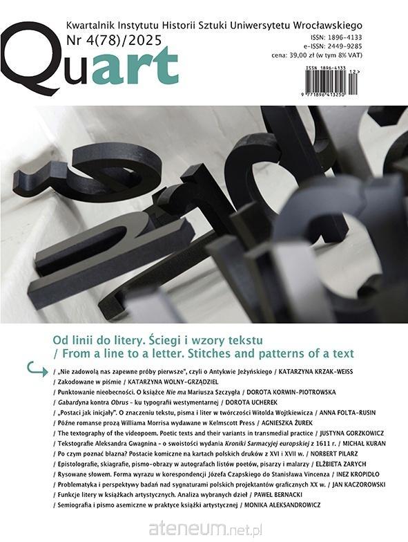 Przedkładany numer "Quarta" jest nietypowy w dotychczasowej tradycji naszego pisma. Nie dlatego, że 14 zawartych w nim tekstów stanowi pokłosie konferencji, bo takie już publikowaliśmy. Jego niezwykłość wynika z oddania łamów przedstawiciel-kom i przedstawicielom innych dyscyplin niż nauki o sztuce. Wszystkie artykuły traktują jednak o tematyce bliskiej historykom sztuki - najogólniej o formie, a dokładniej o operowaniu obrazem lub znakami w powiązaniu z tekstem, o typografii i budo-wie stronicy, o kroju pisma i ilustracjach, o wzajemnych związkach tekstu i obrazu. Ponieważ wiele spośród prac zawartych w prezentowanym numerze napisanych zostało z perspektywy osób badających teksty, w tym dzieła literackie, to niekiedy spojrzenie na towarzyszące im formy graficzne lub nawet na sam tekst jako formę graficzną jest zaskakujące pod względem ujęcia, rozumienia i metod badawczych. To doświadczenie rozszerzające, z którego efektami możemy się zgadzać lub nie, ale które na pewno warto poznać. Konferencja wspomniana na początku była trzecią z cyklu zatytułowanego "Tekstografie", organizowanego przez Zakład Edytorstwa Instytutu Filologii Polskiej i Pracownię Tekstografii Uniwersytetu Wrocławskiego z inicjatywy prof. Jana Choroszego, a nosiła tytuł Od linii do litery. Ściegi i wzory tekstu i odbyła się we Wrocławiu 16-17 maja 2024. Role redaktorek tematycznych tego numeru "Quarta" przyjęły dr Dorota Ucherek i mgr Inez Kropidło, za co wypada im serdecznie podziękować, a nam pozostaje tylko gorąco zachęcić do śledzenia skomplikowanych, ale fascynujących wzajemnych przepleceń między sensem, tekstem i formą graficzną.