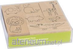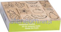 Zestaw 3 drewnianych stempli, każdy z innym motywem, o średnicy 1,2 cm.