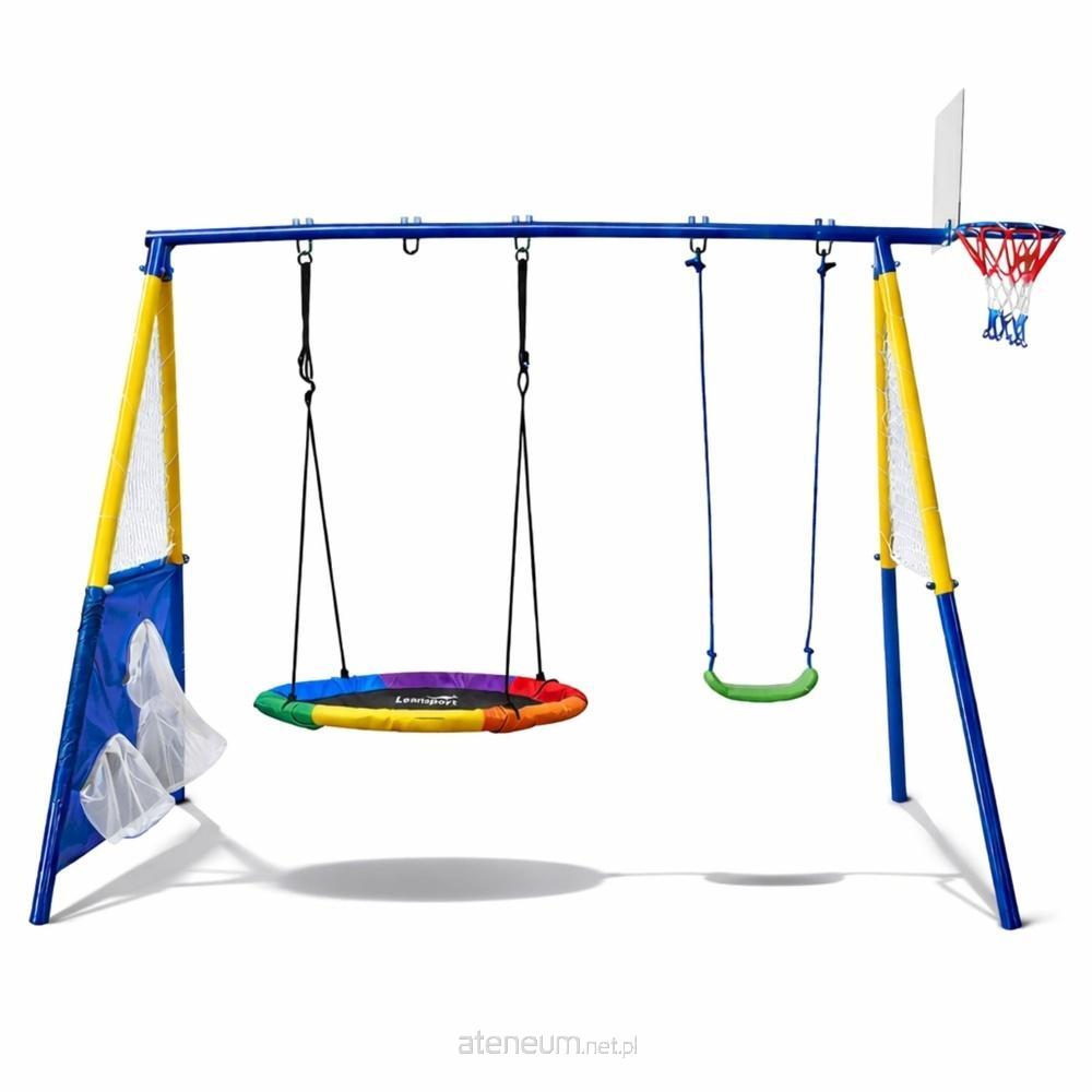 Ogrodowy plac zabaw 4w1 to nowoczesny i funkcjonalny zestaw rekreacyjny, który zapewnia dzieciom aktywną, bezpieczną i różnorodną zabawę na świeżym powietrzu. Dzięki przemyślanej konstrukcji łączy w sobie aż cztery różne formy zabawy: dwie huśtawki, kosz do koszykówki z piłką oraz matę celnościową, co sprawia, że każde dziecko znajdzie coś dla siebie.