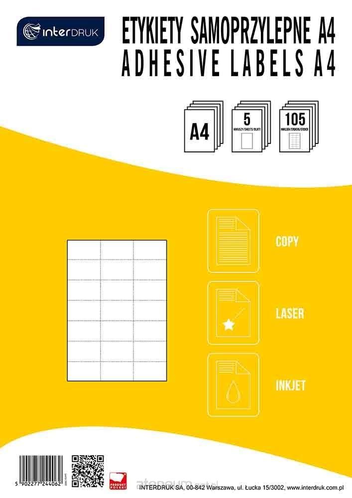 Etykiety samoprzylepne białe w rozm. A4 5 ark. X 21 szt.